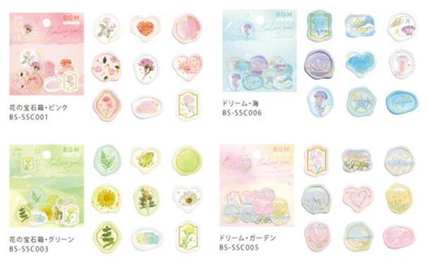 光に透けるような仕上がりで、手帳・スマホケース・カード装飾など、幅広いデコレーションに使いやすいシリーズです。