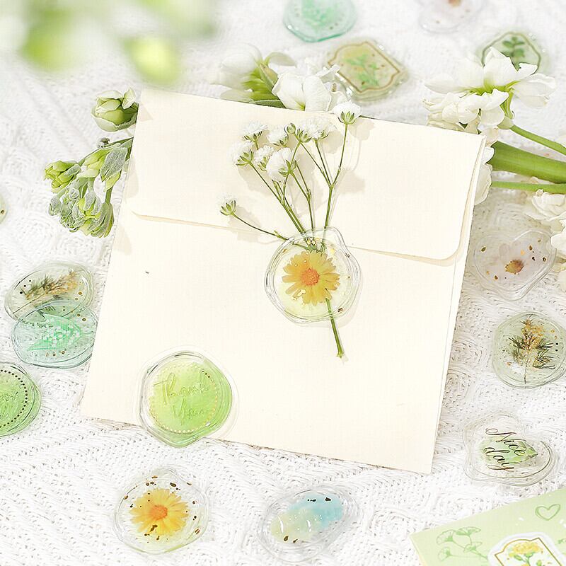 ◆ クリア シーリングシール 花の宝石箱・グリーン