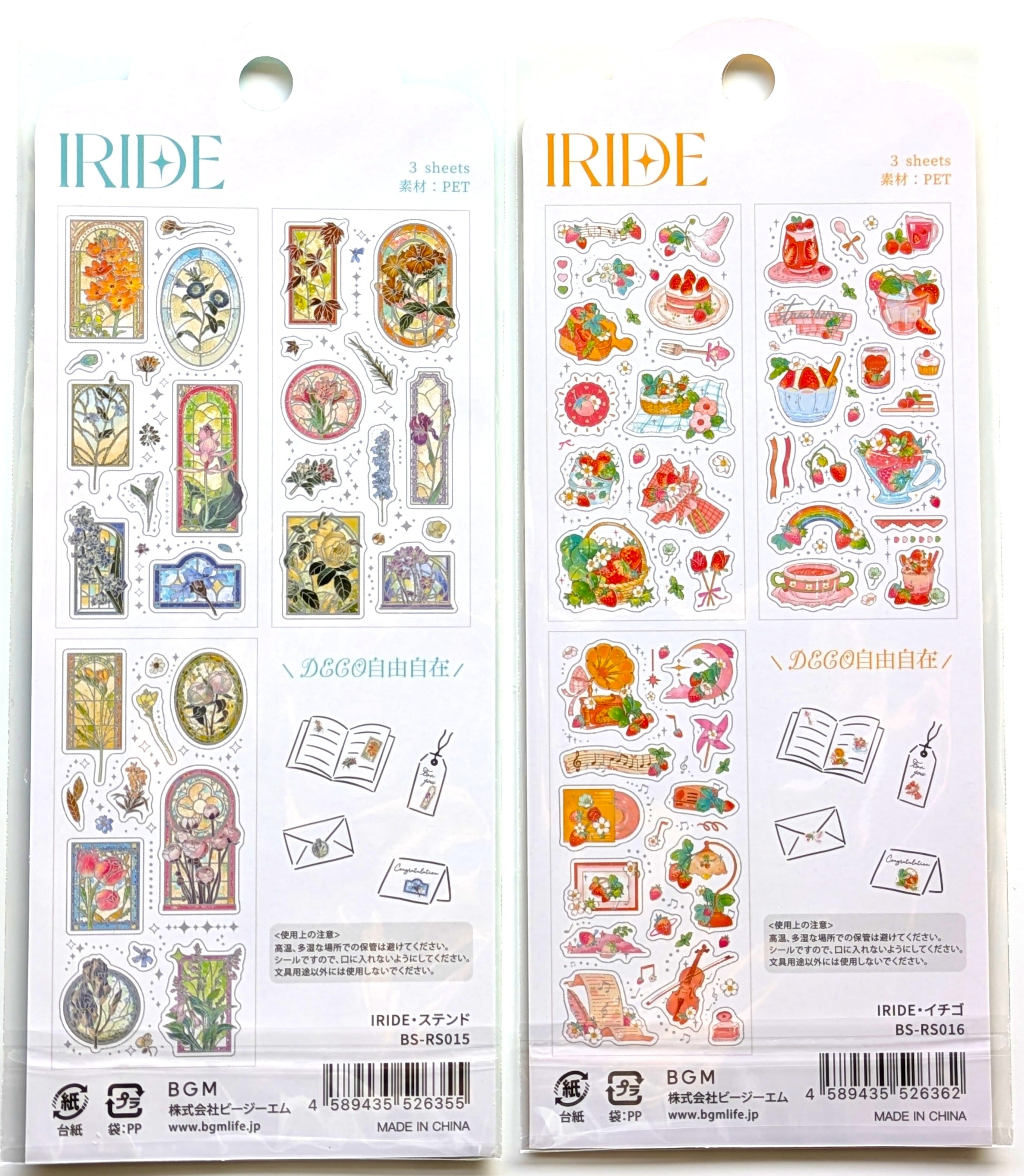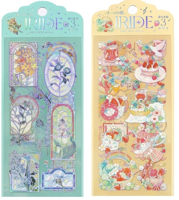 シール/ステッカー/クリアシール/IRIDE/イリーデ/BGM/ビージーエム/オーロラ箔/ステンドグラス/いちご/フラワー/コラージュ素材/デコ