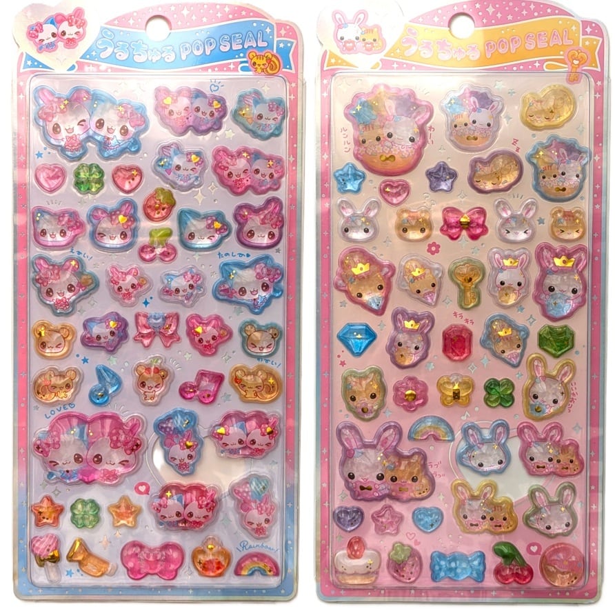 平成レトロ まじかるみゅ~ちゃん&フワフワらびちゃん うるちゅるPOPシール 2枚セット