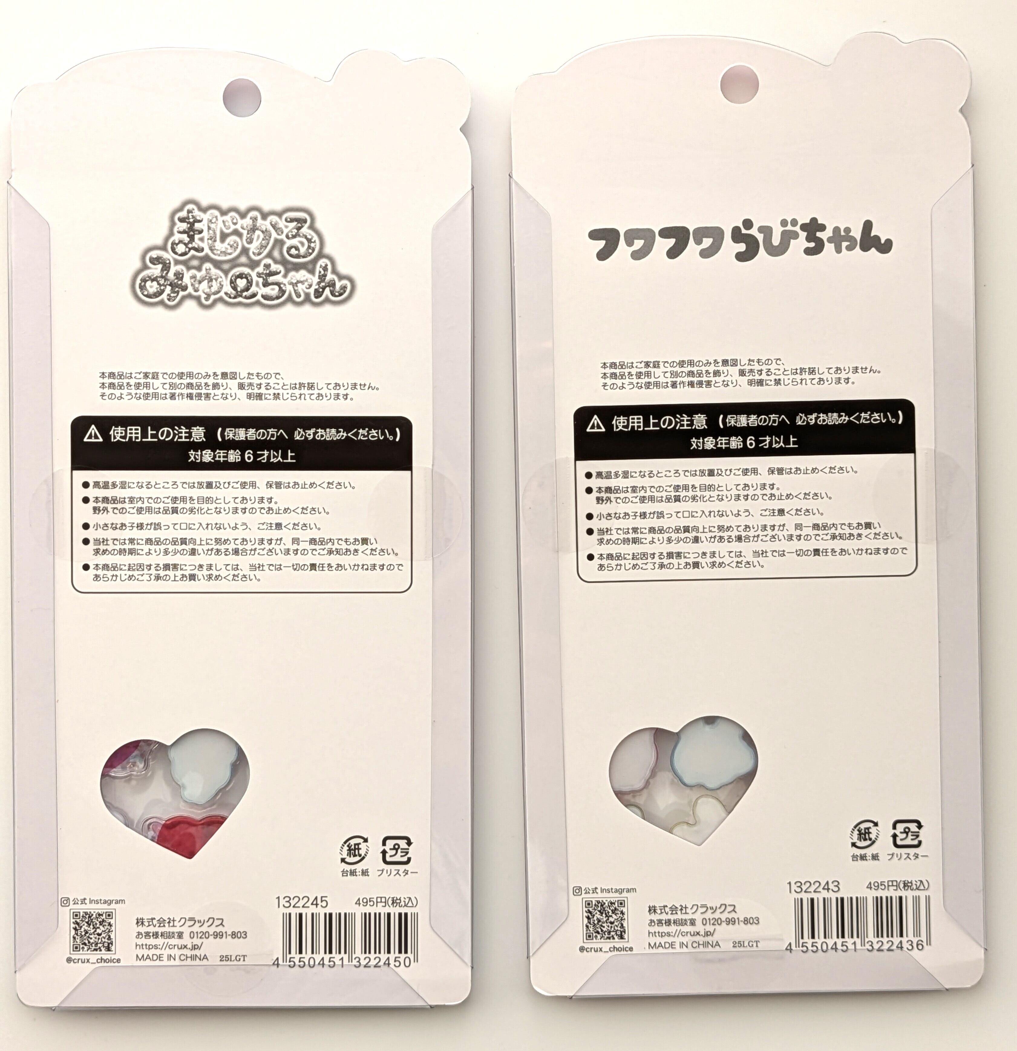 「まじかるみゅ~ちゃん」と「フワフワらびちゃん」の2種類を一緒に楽しめるセットです。手帳デコ・スマホケース・硬質ケースのデコレーションや、シール交換にもぴったり♪