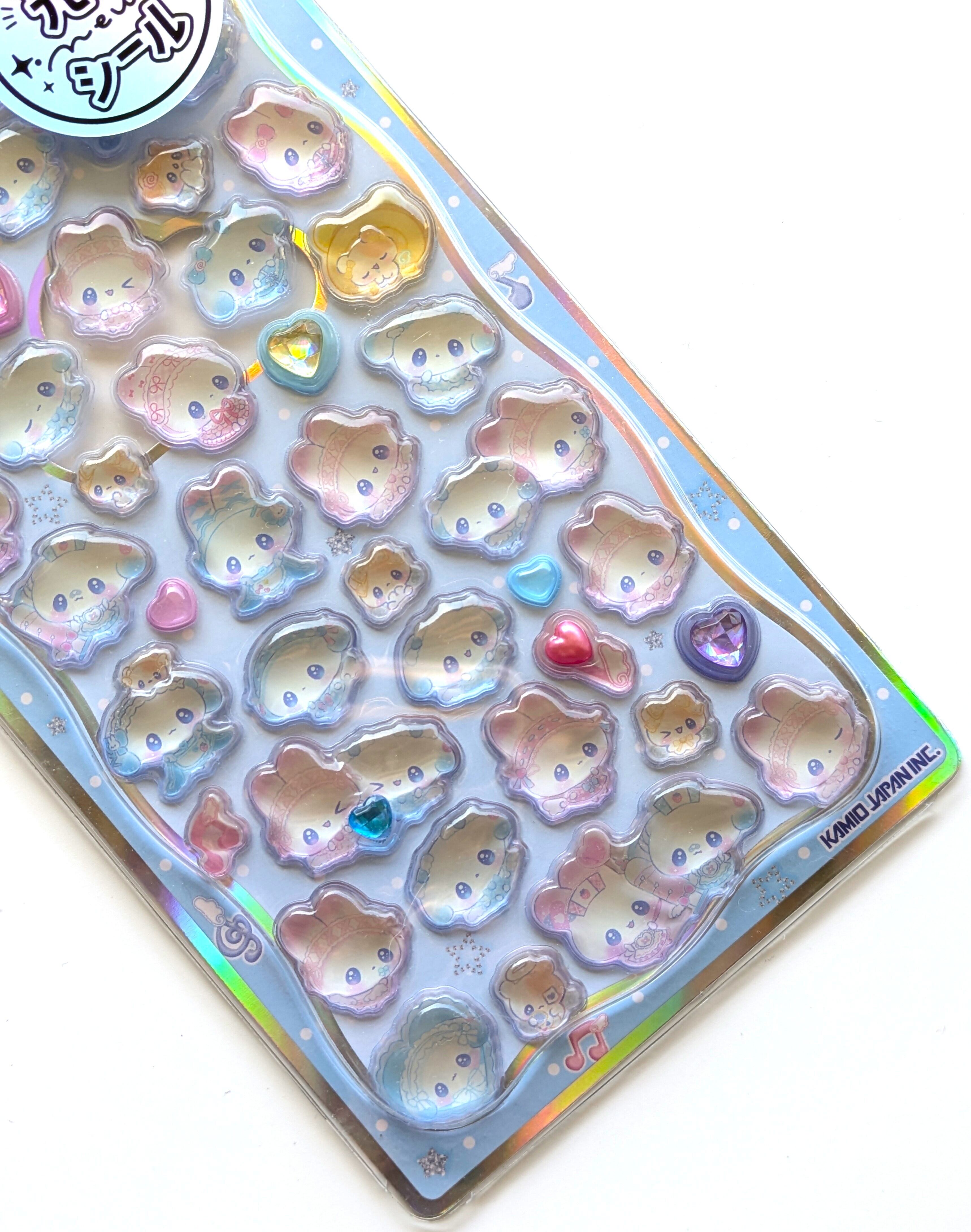 仕様:ぷっくり立体シール、ラメ入り、樹脂加工シール、蓄光タイプ(光るシールは暗所で発光)