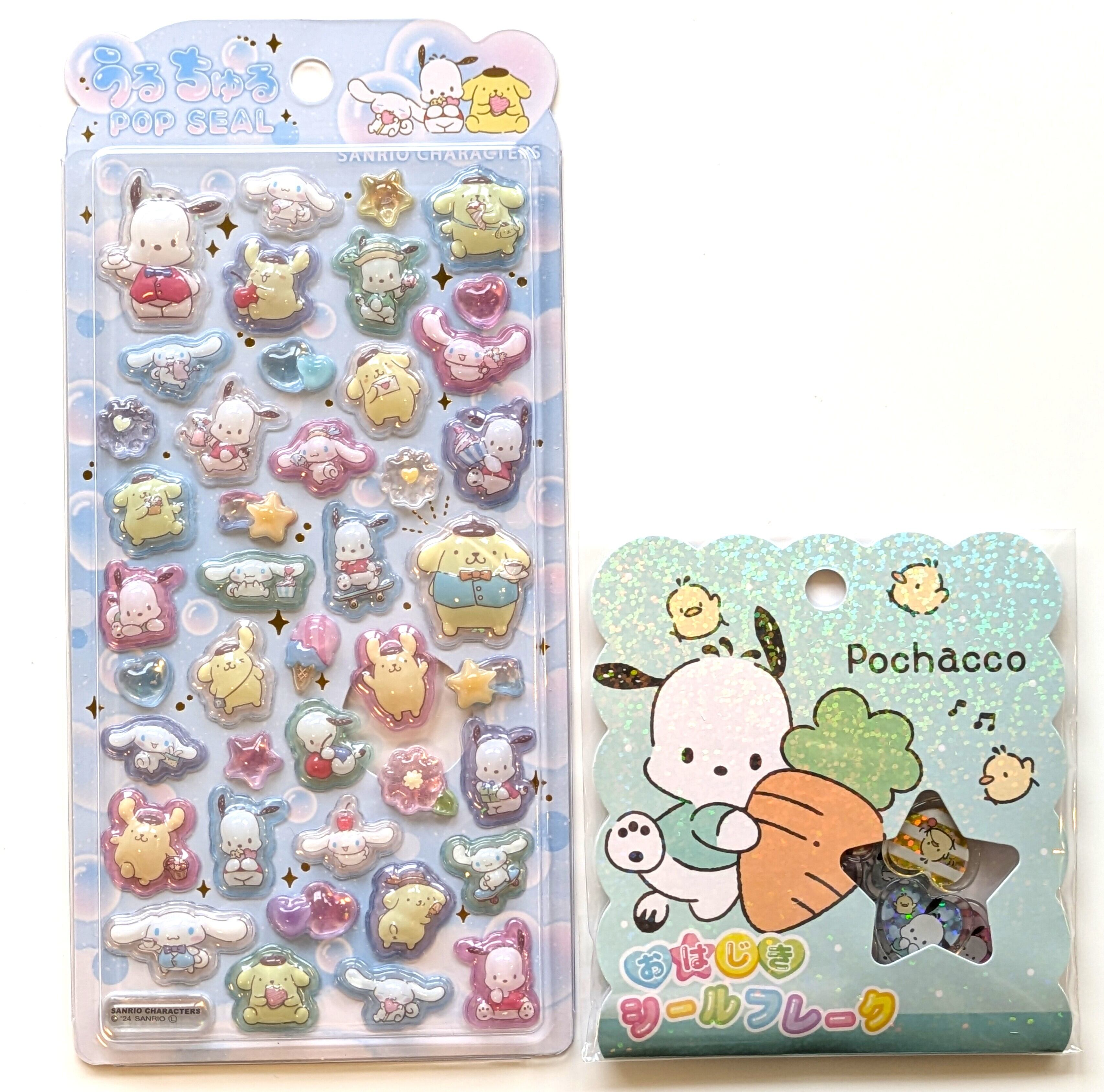サンリオ うるちゅるPOPシール + ポチャッコ おはじきシールフレーク 2点セット